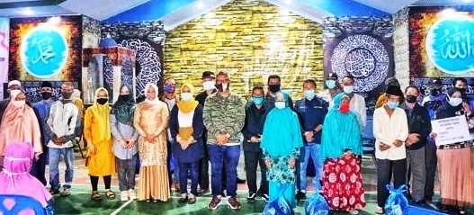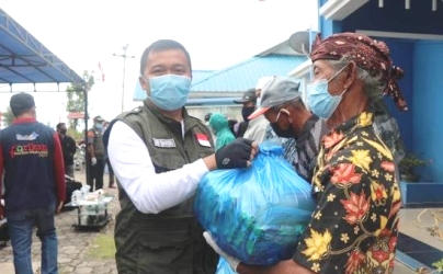 Camat Gunung Kijang, Arif Sumarsono menyerahkan sembako. |