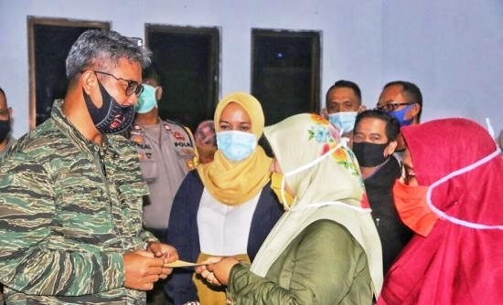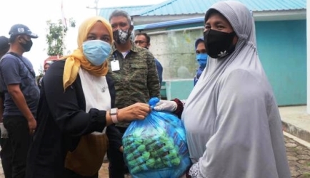 Ketua TP PKK Bintan Deby Maryanti menyerahkan sembako. |