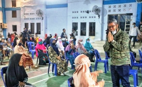 Bupati Bintan, Apri Sujadi menyapa warga Desa Malang Rapat. |