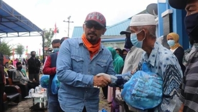 Apri Sujadi pun langsung menyerahkan sembako dan masker ke warga. Dalam sambutannya, Apri Sujadi menyampaikan kepada warga bahwa bantuan "Secanting Beras" tersebut merupakan sumbangan dari seluruh ASN yang ada di Pemkab Bintan ang kemudian dipermusah dengan diganti paket sembako.