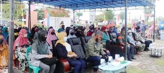 Bupati Bintan Apri Sujadi, Ketua TP PKK Bintan Deby Maryanti serta Anggota DPRD Bintan dan Kepala OPD Bintan mendengarkan pemaparan dari Kades Teluk Bakau. |