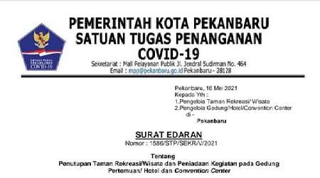 Hal itu terlihat dari "surat edaran No; 1586/STP/SEKR/V/2021" yang dikeluarkan tanggal 16 Mei 2021, ditanda tangani langsung oleh Ketua Satuan Tugas Penanganan COVID-19 Kota Pekanbaru DR. H. Firdaus, ST, MT., sementara sebelum surat edaran keluar sempat viral video berkerumun dilokasi wisata tersebut.