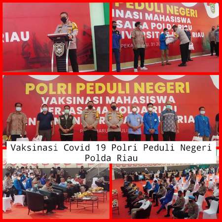 Kapolda Riau Irjen. Pol. Agung Setya Imam Eggendi, menyebut peserta vaksinasi melakukan registrasi/screening, kata Agung "bagi peserta yang telah melakukan vaksinasi dipersilahkan untuk pulang serta menerima pembagian bansos". Kemudian penyerahan tali asih secara simbolis oleh Kapolda Riau kepada mahasiswa dan masyarakat.