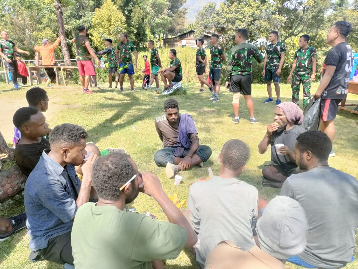 Meriahkan Hari Pahlawan, Terpantau Keakraban Warga Distrik Walesi Olahraga Bersama Satgas Yonif RK 751/VJS