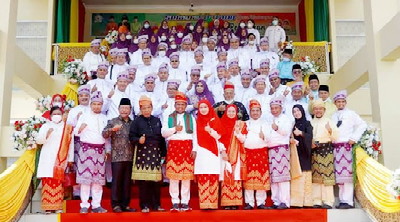 Advertorial - Dalam apel upacara memperingati Hari Ulang Tahun (HUT) ke-22 Pelalawan, Bupati Pelalawan, Riau, H Zukr Misran bersama Wakil Bupati H Nasarudin, MH., menyampaikan capaian seratus hari kerjanya, di halaman kantor Bupati Pelalawan, Selasa (12/10/21).